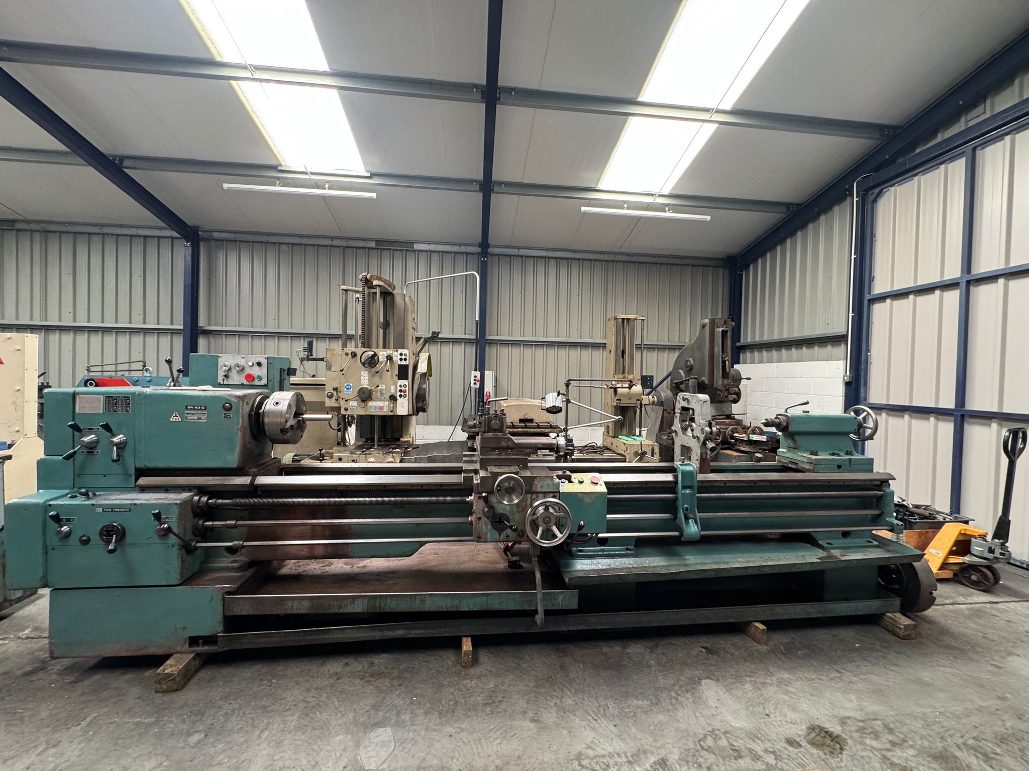 EQUIPPED WITH:3 JAW 4 JAW, FACEPLATE, QUICK CHANGE TOOLPOST, FIXED AND TRAVELLING STEADIES. CENTRE