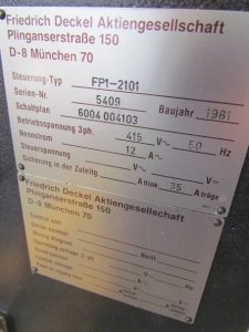 DECKEL MODEL FP1 UNIVERSAL TOOLROOM & BORING MACHINE MACHINE.